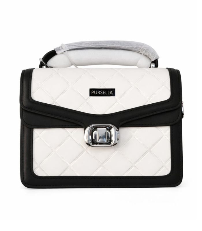 PURSELLA Luxe Quilted Dual-Tone Top Handle Shoulder Bag – Black / White