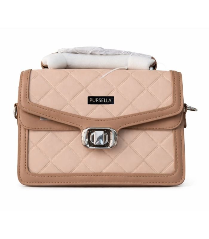 PURSELLA Luxe Quilted Dual -Tone Top Handle Shoulder Bag – Peach / Beige